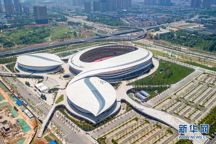 武漢五環(huán)體育中心是2019年第七屆世界軍人運(yùn)動會主要比賽場館之一,將承接軍運(yùn)會田徑、乒乓球和水上救生等三項賽事。包含3萬座體育場、8000座體育館和1000座游泳館,三大類場館以體育場為核心,兩館分居兩翼,呈品字形分布,狀如鳳凰展翅,頗具荊楚風(fēng)韻。